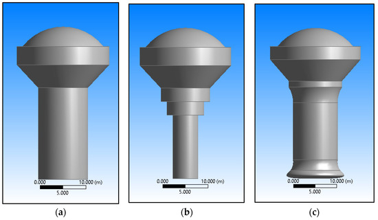 Water tank models with M21 shell roof: (a) circular, (b) stepped, and (c) bio-mimicked columns.