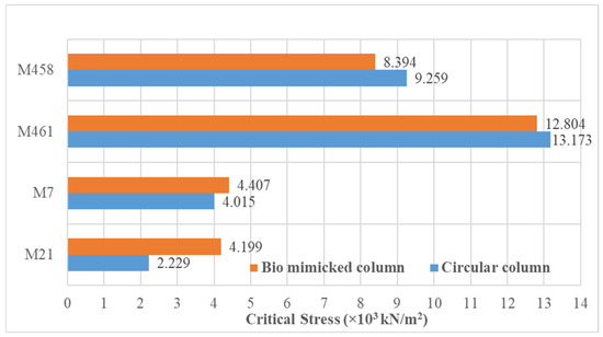 From the numerical analysis, the ultimate load-carrying capacity of the conventional water tank specimen was found to be 110 kN, and for the bio-mimicked water tank specimen, it was found to be 150 kN. The capacity ratio of the specimen was calculated in comparison with that of the conventional specimen. The capacity ratio of the bio-mimicked specimen in comparison with load and stress are 1.36 and 4.05, respectively. The details of the comparisons are presented in Table 10.