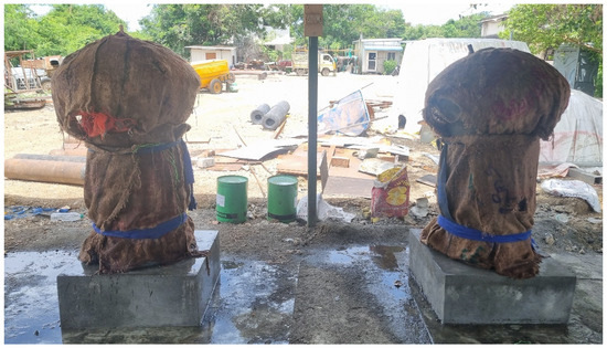 The conventional and bio-mimicked water tank specimen failure behavior was a typical structural failure. The formation of cracks was at the joints of the base slab and column. In both conventional and bio-mimicked water tank specimens, the cracks occurred only at the junction of the base slab and column, as seen in Figure 31a,b, respectively.