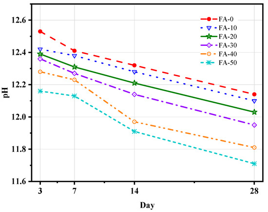 Figure 12. pH value of FA-GBFS cement.