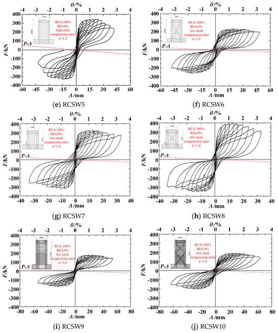 - Chen, L.H.; Xiao, F.; Liu, B.K.; Zhou, A.; Si, H.Y. Experimental study of recycled concrete high shear walls under different axial-load ratios. Build. Struct. 2013, 43, 101–104. (In Chinese) [Google Scholar]