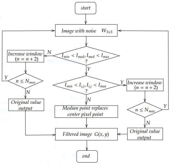 Figure 3. Flow chart of adaptive median filtering algorithm.