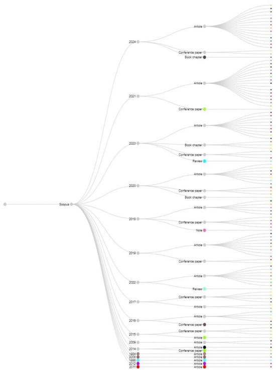 VOSviewer is a highly versatile software tool designed specifically for constructing and visualizing bibliometric networks, making it an essential resource for researchers engaging in scientometric and bibliometric analyses [59,60,61]. It is renowned for its capacity to process and represent complex relationships within large datasets, particularly those drawn from bibliographic sources such as academic publications, patents, and conference proceedings [62,63]. These networks can include journals, researchers, or individual publications, and they can be based on citations, bibliographic couplings, co-citations, or co-authorship relations [64,65,66,67]. The tool’s capacity to handle large datasets is particularly beneficial in fields with extensive research output, such as materials science or civil engineering [68,69,70,71]. The size of each node typically correlates with its frequency or prominence in the dataset, while the distance between nodes indicates the strength of their relationship or the degree of their co-occurrence [72,73,74,75]. By examining co-authorship networks, researchers can identify the most prolific authors and institutions, as well as the collaborations that have driven significant advancements in the field [60,76,77,78]. In addition, VOSviewer offers a text mining functionality that can be used to construct and visualize co-occurrence networks of important terms extracted from a body of scientific literature [79,80,81,82].