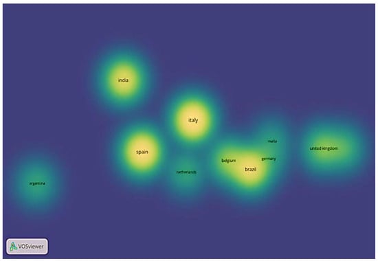 - Geographic distribution of research interest: Setting a minimum document threshold of one within a country revealed a total of 31 countries actively researching this topic. Among these, Italy, with 20 documents and 1235 citations, Spain, with 18 documents and 617 citations, Brazil, with 14 documents, and India all emerged as leading contributors, having the highest number of publications in the dataset. While the Netherlands, the United Kingdom, and Malta had a lower publication volume, their presence indicates a global interest in crystalline admixtures, as seen in Figure 5.