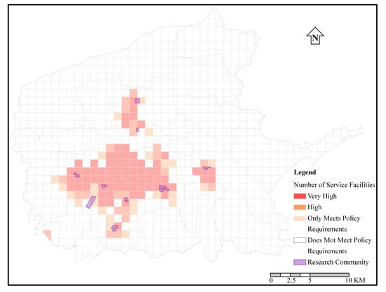 The research subject of this article is the community elderly care service facilities. It includes not only facilities specifically designed to serve the elderly, but also public service facilities and commercial service facilities related to elderly care that the elderly use in their daily life. Three kinds of facilities together provide facility support for the elderly’s community life, and the classification method of the above-mentioned service facilities follows the relevant regulations of the Chinese government [,].