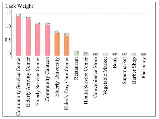 Ranking of the lack weight for community elderly care service facilities.