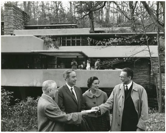- Toker, F. Fallingwater rising: Frank Lloyd Wright, E.J. In Kaufmann, and America’s Most Extraordinary House; Knopf: New York, NY, USA, 2003. [Google Scholar]