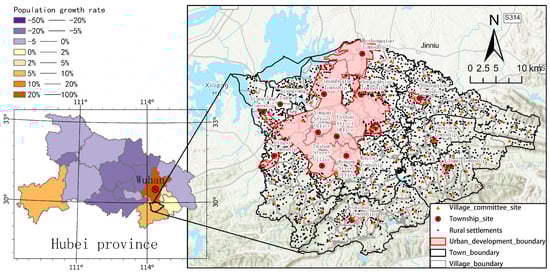 - Li, W.; Li, J.; Cui, J. Exploring rural decline with the perspective of demographics: Case study of Hubei, China. Phys. Chem. Earth Parts A/B/C 2020, 120, 102917. [Google Scholar] [CrossRef]