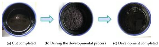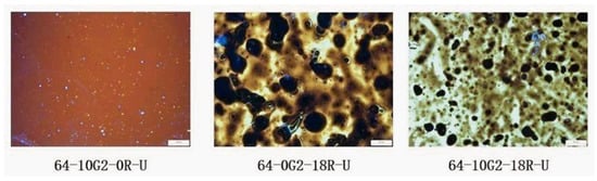 The exceptional elasticity and viscosity of waste rubber make it suitable for grinding into specific rubber powder, offering a cost-effective solution in the modification of road petroleum asphalt []. In contrast to conventional rubber, desulfurized rubber, characterized by a relatively low molecular weight and the presence of a binder, exhibits favorable high-temperature storage stability. It undergoes chemical reactions with the binder, addressing issues such as asphalt binder segregation and ensuring improved compatibility with asphalt. Notably, despite the larger particle size of desulfurized rubber powder, minimal debris remains at the conclusion of the expansion process, effectively absorbing the light oil component of the asphalt [,].
