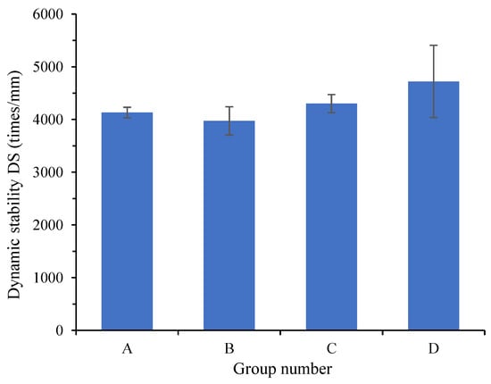 DS is the dynamic stability of asphalt mixture, times/mm;