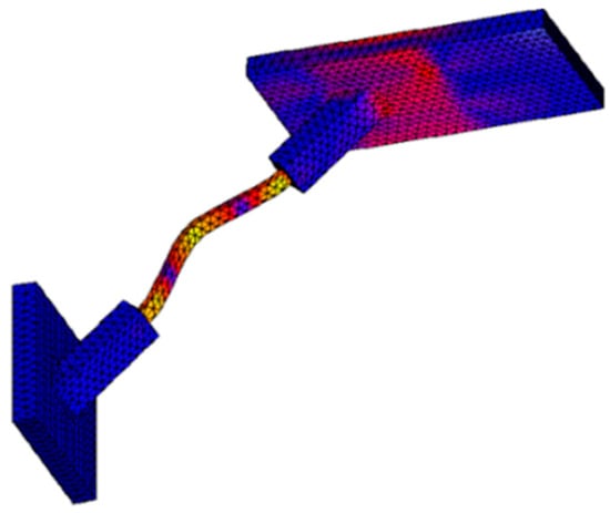 Contour diagram of von Mises stress at a displacement of 2 mm in the case of (b).