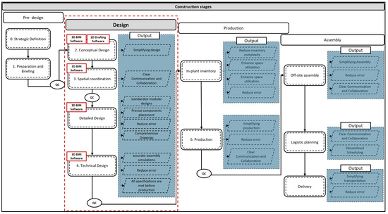 By integrating digital tools in the design stage, we enable detailed and technical design with a focus on the key components extracted from Table 1: standardization, modularization, ease of fabrication and assembly, simplicity and error reduction, material selection, and quality control. This integration not only enhances the design phase but also positively impacts the entire construction process, from reducing errors in production to improving efficiency in assembly and off-site manufacturing, resulting in a streamlined and optimized workflow throughout all construction stages.