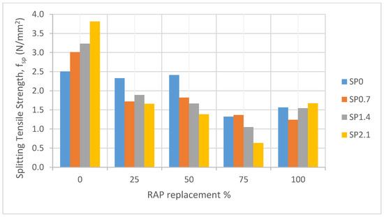 Splitting tensile strength with different RAP replacement for concrete containing superplasticizer.
