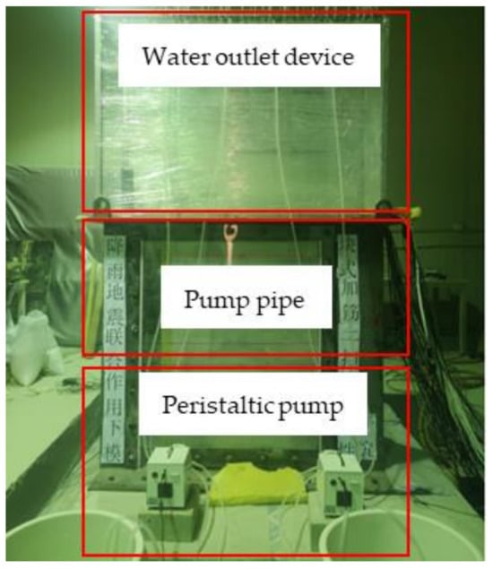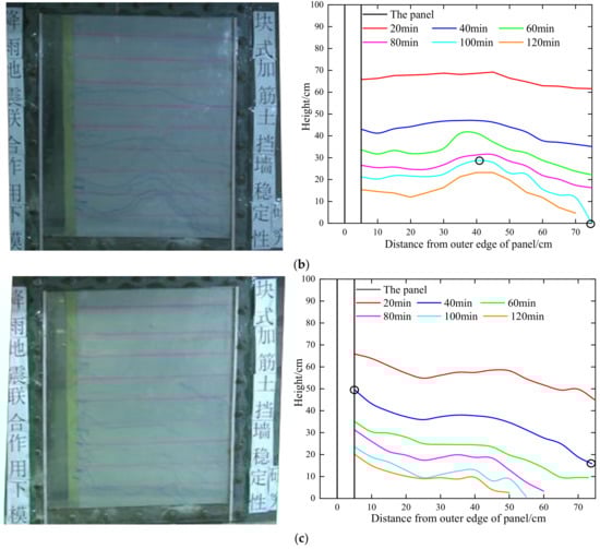 There exists a reinforced earth retaining wall collapsed during an earthquake, which was preceded by rain []. Because of this case, the test was carried out under the condition of rainfall followed by earthquake, as shown in Table 3.