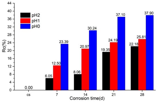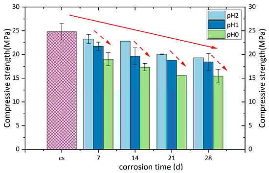- The compressive strength of concrete decreases noticeably due to acid corrosion, with reductions increasing as corrosion time and acid concentration increase. However, as the corrosion front progresses, the penetration of acid into deeper areas becomes limited, resulting in a slowing down of the rate at which compressive strength decreases.