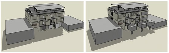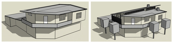 In order to obtain a parametric characterisation of the energy efficiency of representative building typologies, both energy demand and consumption and comfort conditions were analysed for the main typologies identified in the previous step. During the workshops, representative buildings in each of the predominant typologies were selected. From these, 22 energy models were generated for assessment, with each model corresponding to one of the typologies obtained from the data collection. The dynamic energy simulations of these models, with an hourly frequency, were performed using the EnergyPlus calculation engine [23], with the DesignBuilder software (version 4.7.0.027) [24] as the graphic interface. The models considered the meteorological conditions of the Galapagos, the volumetry and construction characteristics of the buildings, and the usage profiles obtained through the surveys carried out.