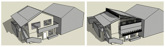 The roof geometry was modified in the residential building and school Living Labs. Openings and ventilation grilles were installed on opposite sides of the building at different heights to enhance interior cooling (Figure 15). This design allows air entering through the windows to exit through the openings under the roof, drawing out the warm air that typically accumulates in the upper parts of the spaces.