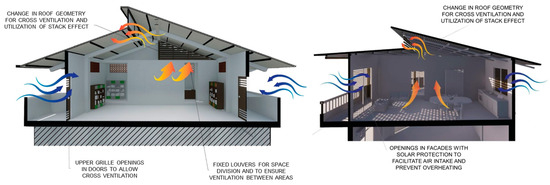 Sectional view of the proposed improvement of natural ventilation in the school and the residential building.