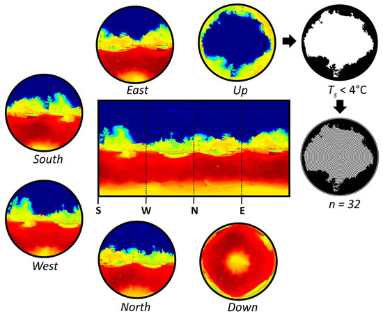 Thermal imaging panoramas projected as 6-way hemispherical photography [17].