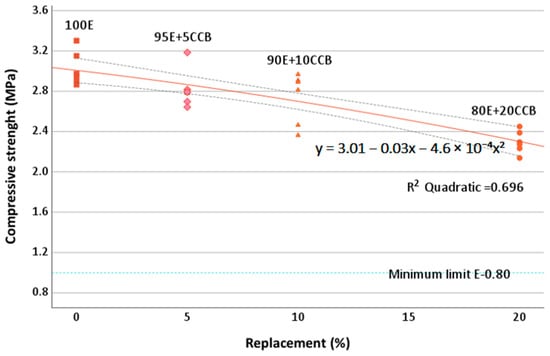 Consequently, the behavior of the properties of the EBs has a direct correlation with the constituent components and with their matrix structure. Their modification by any of the aforementioned methods leads to a significant alteration of their properties [44]. Thus, the study of the physical–mechanical properties of different compounds in EBs (which cause increases in their resistance) is crucial for the development of this construction system.