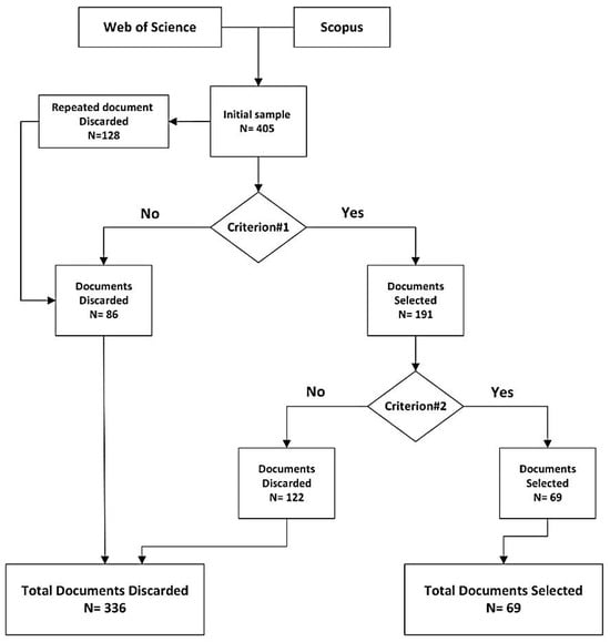 The selection process began with a careful manual review to eliminate any duplicate entries, resulting in the removal of 128 duplicates. Next, the first criterion was applied, which led to the inclusion of 191 articles and the exclusion of 86 non-relevant documents. The application of the second criterion further refined the selection, reducing the pool to 69 documents that provided significant academic value, while excluding the remaining 122. This screening process was systematic, with each document being marked as “Yes” or “No” based on its alignment with the defined criteria. Only those documents that met both criteria and received a “Yes” were considered suitable for inclusion, ensuring that the final selection closely aligned with the research objectives.