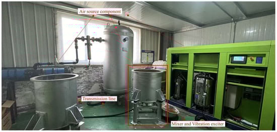 There are currently few reports on the research of vibration agitation of cement slurry, a high-concentration solid–liquid suspension system, and the majority of simulation studies of solid–liquid mixing and stirring are concentrated on the flow field of the low concentration suspension system. These studies primarily focus on the traditional mixing technology, i.e., smooth static mixing conditions. There are insufficient studies on the vibration agitation process of the vibration mixing device and the interaction process of the mixing material mechanism, which are the primary reasons why vibration agitation technology is limited to laboratory research and difficult to apply on a wide scale in industry. In light of this, the design of the mixer, vibration source, and mixing equipment for vibration agitation technology is developing slowly. In this work, a high-power pneumatic excitation mixing system and a flow field numerical simulation for the high-concentration solid–liquid vibration agitation process in two distinct mixing vessel structures—the vertical shaft type and the horizontal shaft type—were described. P·O 42.5 was the substance utilized, and the cement-to-water ratio was 0.5. At 0–100 Hz, vibration agitation was used to examine the cement slurry’s flow field properties and mixing effectiveness. This provides a theoretical foundation for the preparation of cementitious materials using vibration mixing and high-concentration solid–liquid mixing.