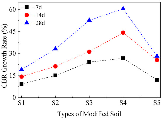 CBR growth rate at different curing ages.