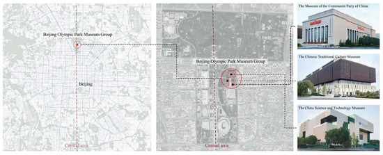 Located in Chaoyang District, Beijing, the Beijing Olympic Park Museum Group along Beijing central axis is an important area for Beijing to promote the construction of a “City of Museums”, reconstructing the northern end of Beijing’s central axis. The museum group consists of three distinct museum buildings: the Chinese Traditional Culture Museum, the Museum of the Communist Party of China, and the China Science and Technology Museum (Figure 1). The three museums selected in this study form the Beijing Olympic Park Museum Group in terms of location, so viewing the pictures of the three museums at the same time is pasted into the real city visual experience. At the same time, the specific characteristics of the three museums are different, so it is possible to better study the different effects of real environmental elements on the visual quality and human emotional experience.