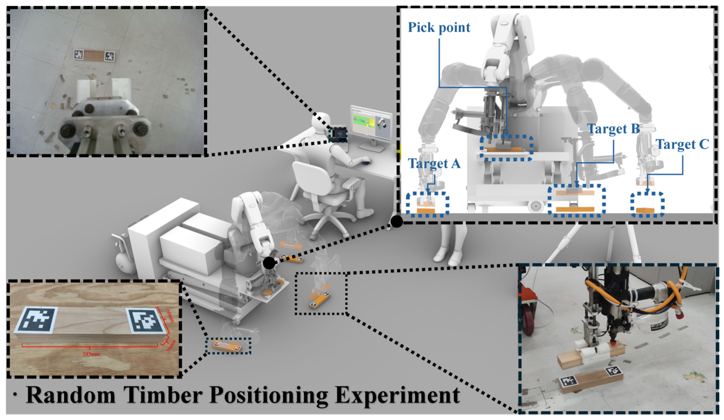 Bi, K.; Shi, X.; Wan, D.; Zhou, H.; Zhao, W.; Sun, C.; Du, P.; Fukuda, H. Research on Automated On-Site Construction of Timber Structures: Mobile Construction Platform Guided by Real-Time Visual Positioning System. Buildings 2025, 15, 1594. https://doi.org/10.3390/buildings15101594