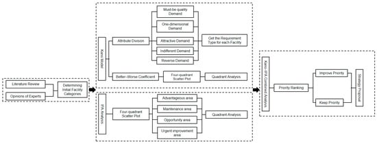 Combining Kano and IPA analysis, in addition to discovering the characteristics of residents’ demand for and satisfaction with public service facilities compared to previous studies [,], this study investigates the specific priorities for the construction and renewal of rural public service facilities. The specific method involved the use of the Kano–IPA model to derive the order of importance for the improvement and maintenance of 39 rural public service facilities. This study proves that the application of the Kano–IPA model in regard to the quality assessment of public service facilities can effectively combine the real needs and satisfaction of rural residents, and is a more systematic, comprehensive, and targeted research approach.