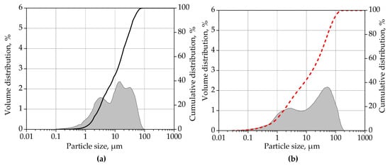 Particle size distribution of the reference: (a) PC; (b) NPA.