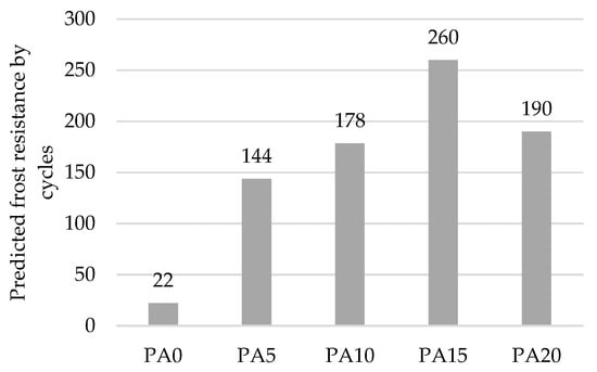 After 28 days of curing, the specimens were weighed in air and water. After recording the weight values, the specimens were dried in an oven at 100 ± 5 °C until constant mass was achieved. The water absorption rate was determined using the methodology given in EN 13369:2018 [56]. Freeze–thaw resistance was quantitatively assessed using the frost resistance coefficient. Knowing the value of frost resistance coefficient, the freeze–thaw resistance of hardened concrete can be predicted according to the function of the concrete’s freeze–thaw resistance and frost resistance coefficient [57].