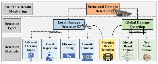 - Saidin, S.S.; Jamadin, A.; Abdul Kudus, S.; Mohd Amin, N.; Anuar, M.A. An overview: The application of vibration-based techniques in bridge structural health monitoring. Int. J. Concr. Struct. Mater. 2022, 16, 1–17. [Google Scholar] [CrossRef]