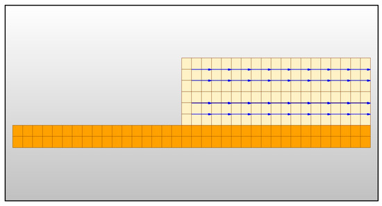 - Adiabatic boundary: As a special Neumann boundary condition, this configuration assumes zero heat flux across surfaces. Considering computational efficiency and symmetry requirements for the quarter-symmetry model adopted, all surfaces adjacent to symmetric planes were assigned adiabatic conditions to eliminate heat exchange.