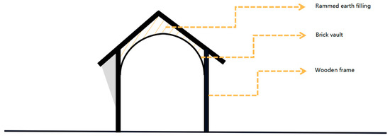 The traditional residential in Xiaoyi Ancient City utilize natural elements like brick, wood, and soil, and their combination endows the structures with superior thermal insulation capabilities, enabling them to withstand significant climate variations efficiently. The outer walls of the structures are typically constructed to be elevated, a design that efficiently obstructs the infiltration of cold external air. Particularly during winter, when external temperatures are low, the wall’s insulation properties provide a warmer inside environment, preventing the direct influx of cold air. Moreover, several ancient residences in Xiaoyi Ancient City were constructed in the ‘kiln cave’ style, engineered to maintain a low inside temperature during summer and ensure adequate warmth in winter with thick earthen walls and restricted window openings. The kiln’s robust thermal stability minimizes the impact of external temperature variations on the internal climate, thereby improving the residents’ comfort. Simultaneously, the roof structure of the residential (Figure 7) contributes to temperature regulation. The primary residence features a gabled roof, whereas the auxiliary structures are equipped with a mono-pitched roof. This structural design effectively channels rainwater flow and moderates temperature in the courtyard via the roof configuration proportions. The double-slope roof design minimizes the disproportions of roof surface exposure to cold external air during winter. In contrast, the single-slope roof mitigates heat loss by elevating height. The judicious use of residential materials, wall design, roof structure, and the incorporation of internally constructed kilns in the traditional residences of Xiaoyi Ancient City significantly improved the thermal stability of the structures. It maximized warmth retention in winter while facilitating cooling in summer.
