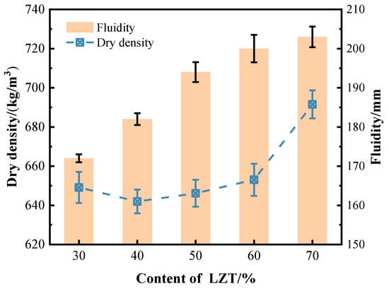 Influence of various LZT content on the fluidity and dry density of GFC.