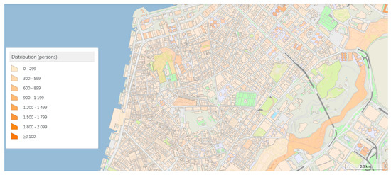Population density distribution. (Image source: Macau Statistical Geographic Information System, https://www.dsec.gov.mo/gis/unidade/unidade.html?lang=en, accessed on 8 January 2025).
