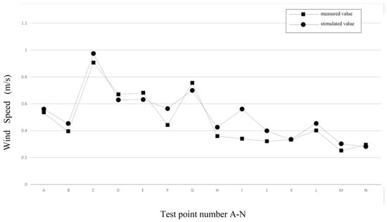 Wind speed values at simulated measurement points of multi-story dormitory.