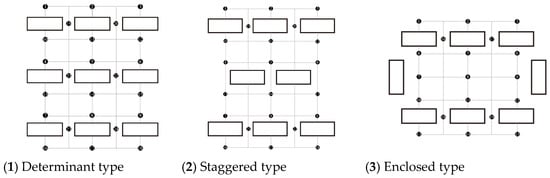 The wind environment is influenced by various factors, including layout form, building size, geomorphic conditions, and wind direction. Among these, layout form and building size are particularly critical, as they are more easily optimized during the planning and design phases [46]. Therefore, for multi-story dormitory buildings, this study selects four key influencing factors, each set at three levels, as outlined in Table 6.
