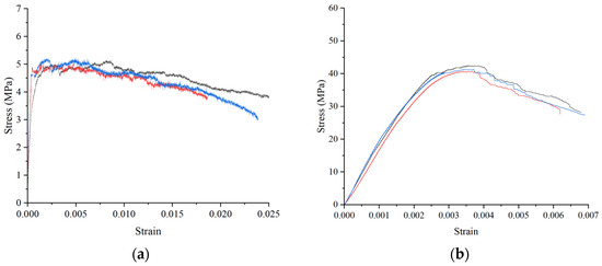 ECC material stress–strain curves. (a) Tensile curves; (b) Compressive curves.