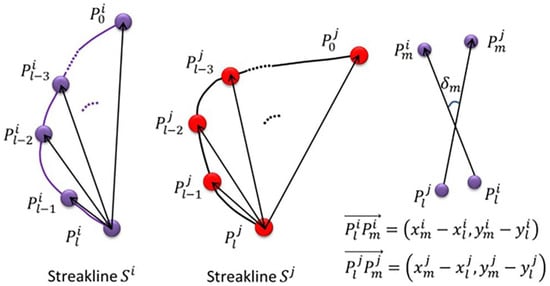 where and denote the local motion vectors of streaklines Si and Sj at step m, respectively.