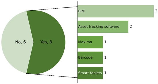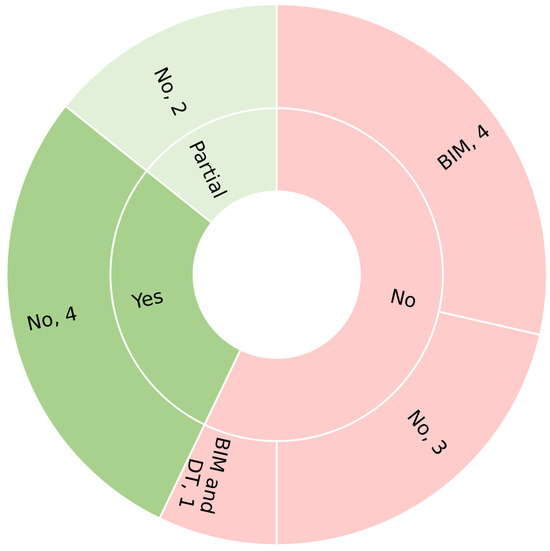 This section presents questions aimed at gauging participants’ awareness of BIM and DTs. It explores areas where FM professionals might seek development to harness the possibilities of digitization. The responses to Q9 revealed a pattern where individuals who expressed contentment or partial satisfaction with existing methods were unaware of BIM and DTs. Conversely, those familiar with these concepts were the ones who initially indicated dissatisfaction with current practices in their organizations. As depicted in Figure 15, 64.3% of participants lacked awareness of BIM or DTs. Among this group, 66.7% were satisfied or partially satisfied with current methods, while 33.3% were dissatisfied. Only a minor fraction, 7.1% of participants, demonstrated familiarity with BIM and DTs, while 28.6% were aware of the existence of BIM.