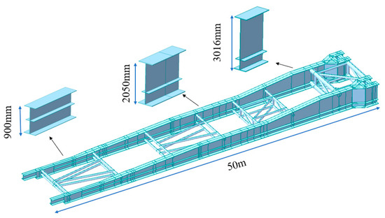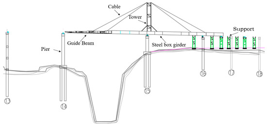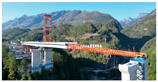 The composite bridge is such that the steel box or steel truss is linked to the concrete bridge deck via shear connectors. These two components bear the load together and exhibit excellent mechanical properties. The construction using the incremental launching technique is a frequently adopted approach for bridges [1]. In the process of jacking construction, the steel beam usually has no pavement layer or concrete slab covering it, and it is in a bare state. However, the steel structure has good thermal conductivity and is relatively sensitive to temperature changes. Thus, in the construction of the steel beam, because there is no pavement layer to cover it, the influence of solar illumination on the temperature effect of the steel beam is remarkably noticeable [2,3]. A relatively large temperature gradient is likely to generate a temperature gradient effect vertically in the structure, thus causing the structure to produce relatively large temperature internal forces and deformations, which affects the structural safety [4,5]. Assisting the construction technique of incremental launching of the steel beam with pylons and stay cables further expands the incremental launching span. Hence, over the course of the incremental launching, the thermal gradient effect of the steel girder should not be overlooked.