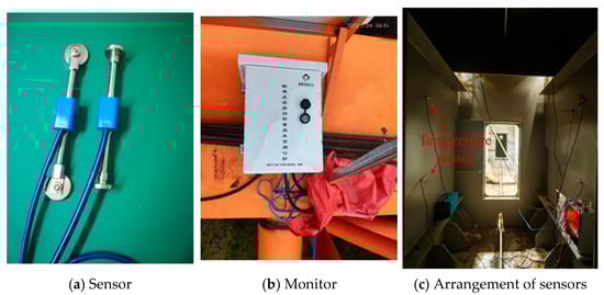 Once the temperature sensors were adhered to the test section, an MCUXX multi-point temperature monitoring instrument was employed to carry out the temperature monitoring. The monitoring instrument is capable of gathering the temperatures at various locations of the steel box girder simultaneously and transmitting the data to the monitoring system. Figure 9 depicts the arrangement of sensors at the construction site.