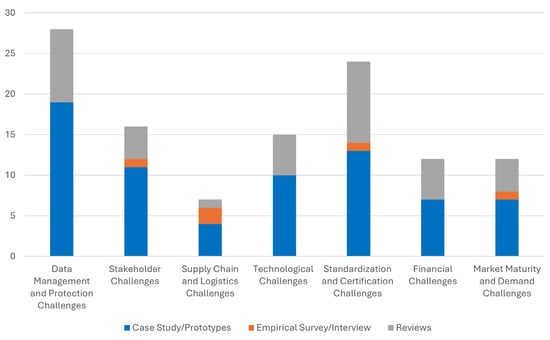 The studies of Abuhalimeh et al. [50], Gasue et al. [23], and Dar Amer et al. [58] explored the awareness levels, stakeholder perceptions, benefits, strategies, and challenges in effectively implementing material passports to support construction waste management. The identification of such influential factors for material passport implementation is foundational to understanding ecosystem dynamics and contextualizes the feasibility of implementation strategies. For instance, in the study by Gasue et al. [23], the findings highlight a low level of awareness of material passports in the Ghanaian construction industry and a high willingness to adopt if adequate infrastructure requirements were provided. From these findings, stakeholders can first develop promotional and educational strategies to sensitize and build professional capacity, after which resources can be directed towards mass industrial implementation.