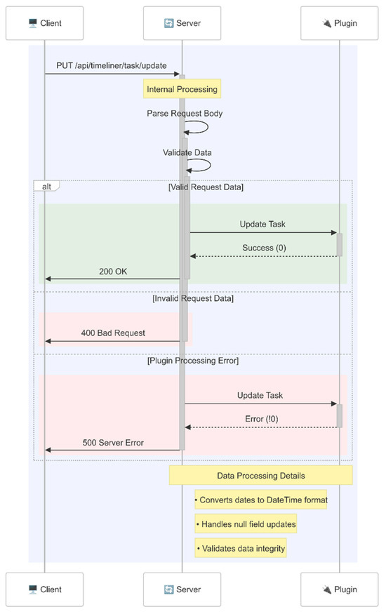JSON serves as the primary data interchange format throughout the system (Figure 2d). It facilitates structured communication across system layers for transmitting parsed commands. HTTP serves as the primary communication protocol between system components (Figure 2e), implementing RESTful design principles and using HTTP methods, such as POST for creating new tasks in Navisworks TimeLiner, PUT for updating existing tasks, DELETE for removing tasks from the system, and GET for retrieving authentication status. The system implements OAuth 2.0 (Open Authorization) authentication for Autodesk Platform Services (APS), ensuring secure access to construction data. In the following section, each of the components is explained in more detail.