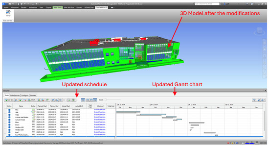 A common application of BIM in construction involves linking schedules to BIM models, creating 4D BIM, a combination of 3D models with time information. This integration enables visualization of construction simulations and provides essential insights into critical schedule aspects [6]. The process necessitates a thorough assessment of on-site project conditions and a comparison between current progress and baseline schedules [6,34].