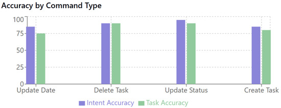Performance testing (Section 6.2) involved developing a systematic testing framework to assess the reliability and accuracy of the NLP processor in interpreting construction-specific commands. This included testing 80 unique commands across five intent categories and analyzing the results using various performance metrics. Accuracy analysis computed and analyzed metrics such as intent accuracy, task name extraction accuracy, precision, recall, and F1-scores to identify strengths and weaknesses in the system’s NLP capabilities.