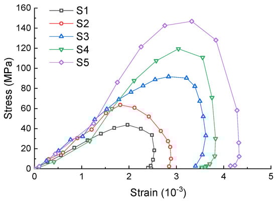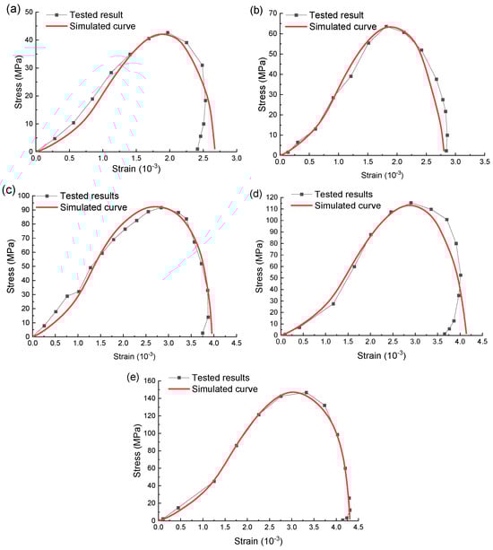 5.1. Comparison of Simulated and Tested Results on Stress-Strain Relationship
