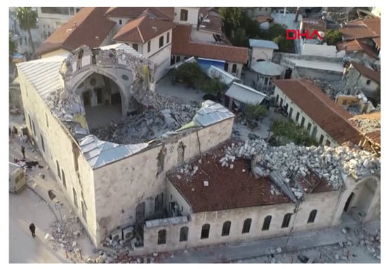 - Habib-i Neccar. Available online: https://www.dha.com.tr/video/antakyadaki-14-asirlik-habib-i-neccar-camisi-depremde-yikildi-video-2204262 (accessed on 2 January 2025).